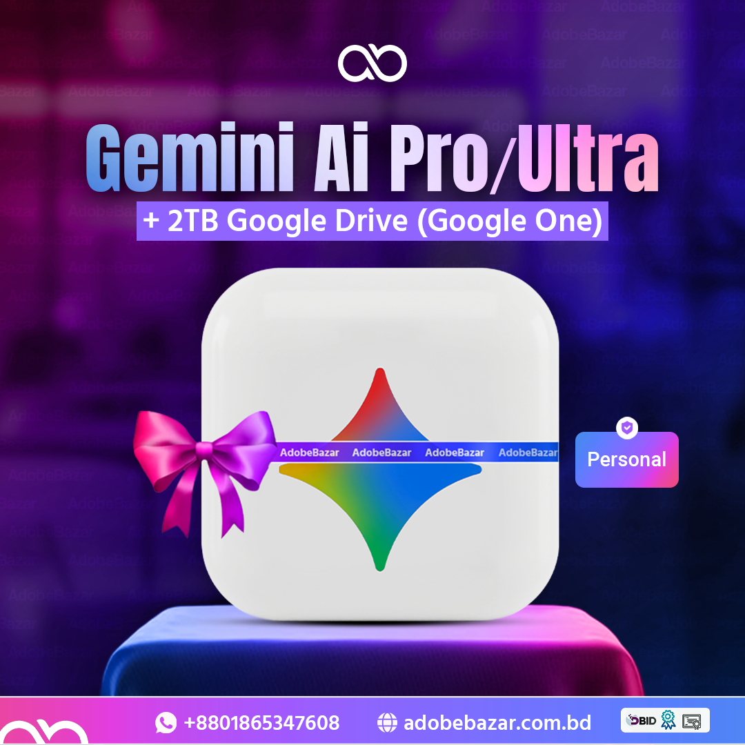 AdobeBazar brings you Google Gemini AI Pro (Yearly) and Gemini AI Ultra (Monthly) — two powerful plans designed for creators, professionals, and businesses in Bangladesh.